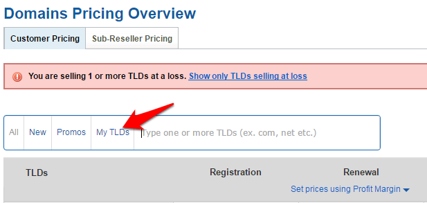 Click on the My TLDs link to list the TLDs for which you are a registrar. If you are a reseller for any TLD, click here learn how to activate / manage an available Promo.
