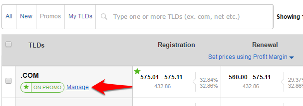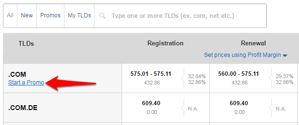 Step 3: Select the TLD for which you wish to start the promo.