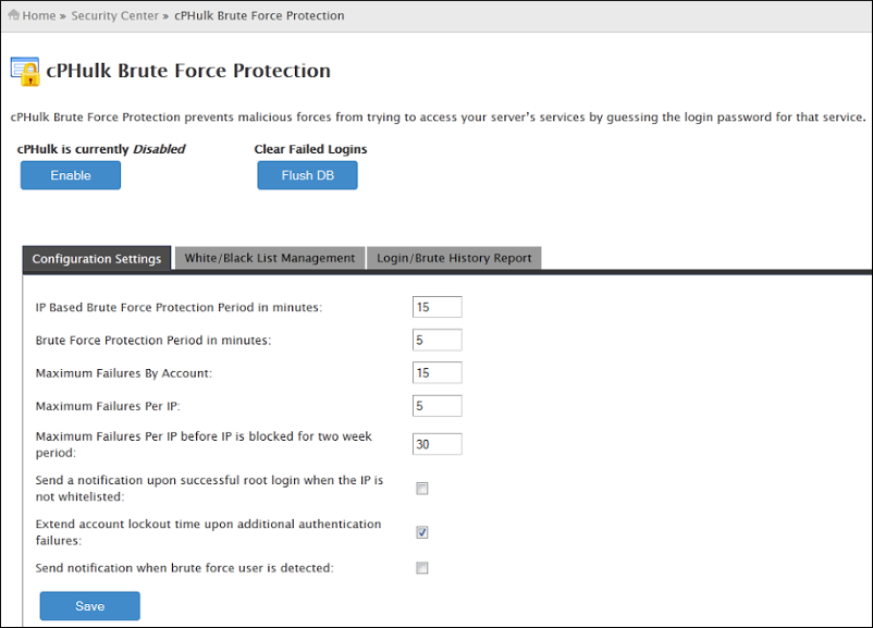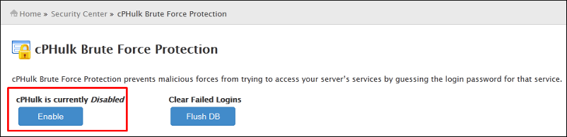 To Enable / Disable cPHulk Brute Force Protection via WHM
