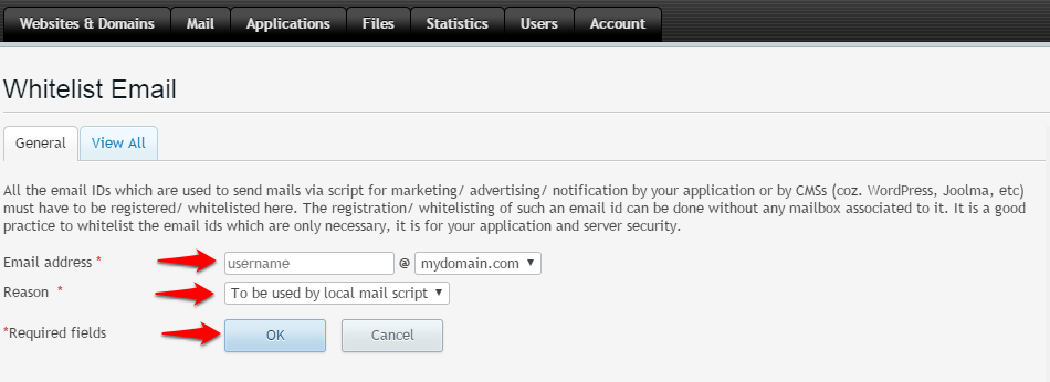 Enter the email ID you wish to register, select the reason from the drop down list and click on OK.
