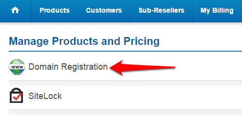 • Click on the Domain Registration link.
