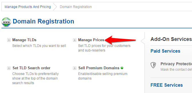 • Click on the Manage Prices link.