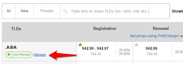 Step 3: Select the TLD for which you wish to manage the promo.
