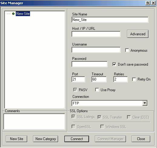1. Open Core FTP. You will be presented with the window below.
